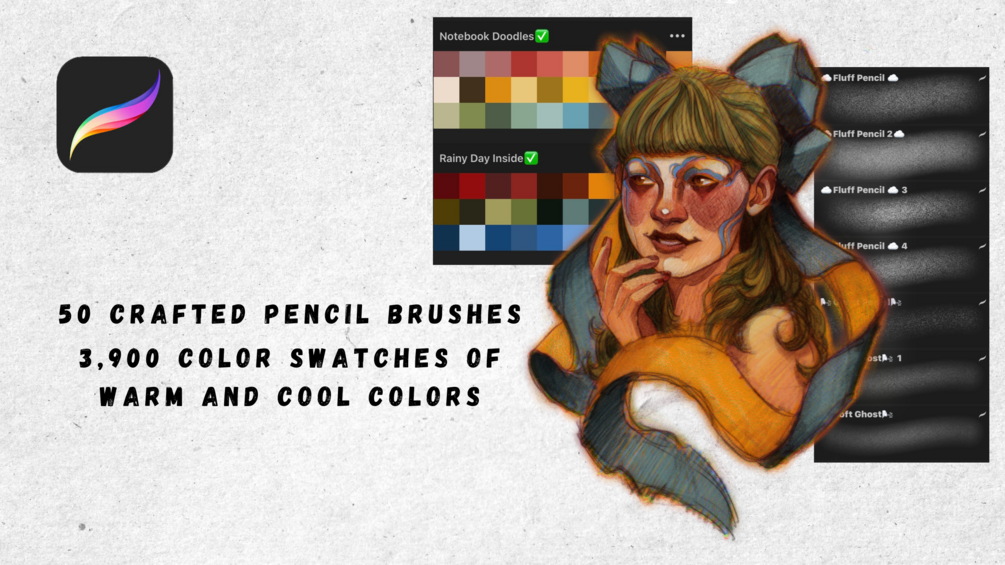 Qty: 1This bundle contains the brand new Cavasker pencil pack with 50 brushes, and over 130 color palettes to help you hit the ground running with new drawings! These products were made to be used with procreate :)